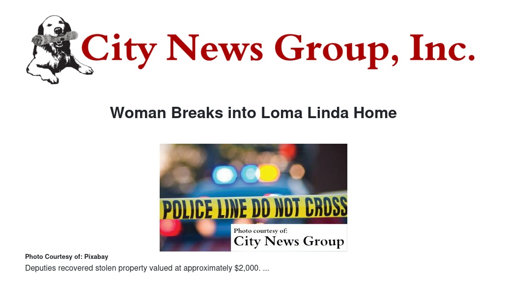 Woman Breaks into Loma Linda Home