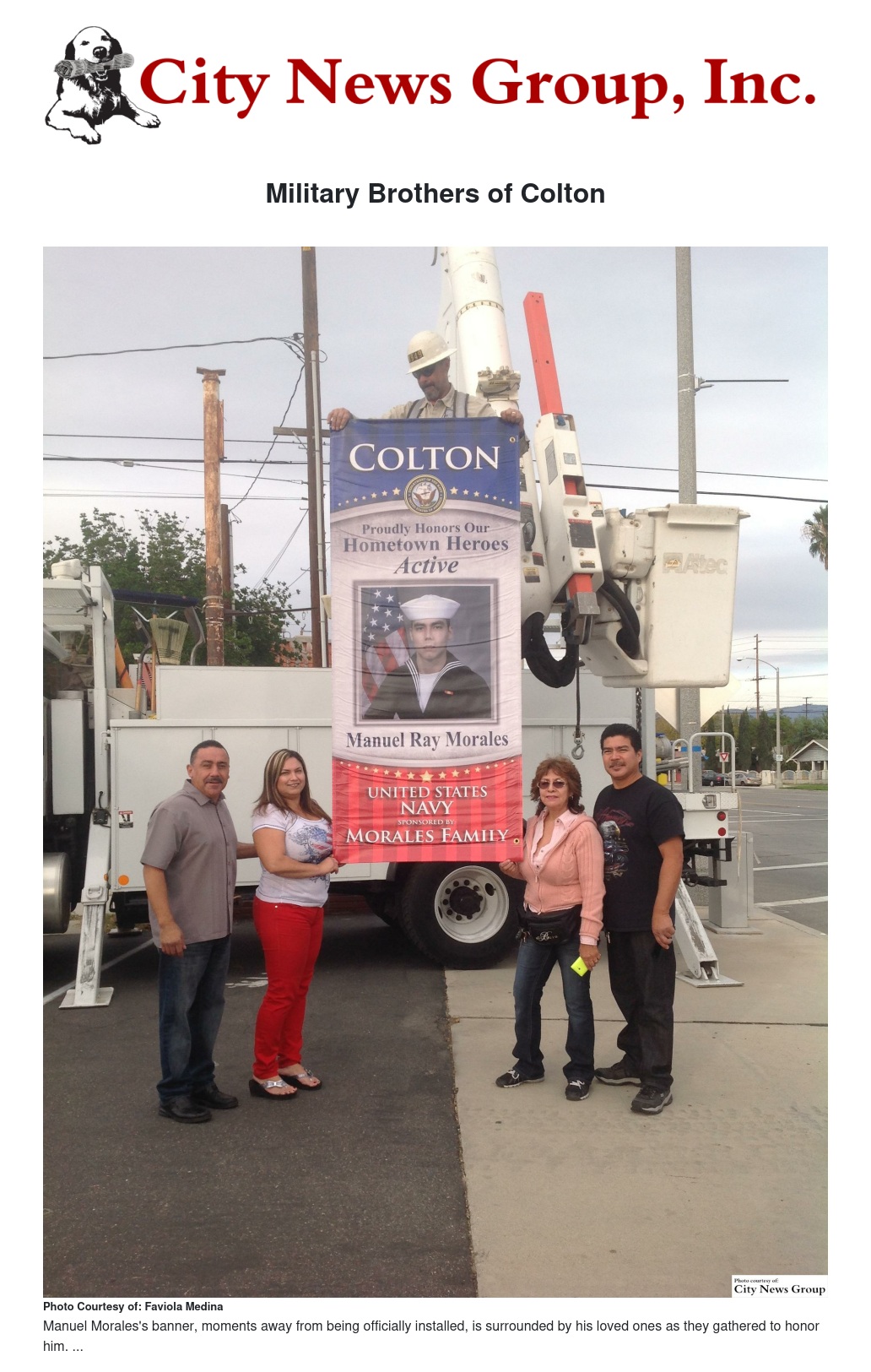 Manuel was honored on Nov. 18, 2014 with his very own military banner installation ceremony. “It was a very special day,” Ray added. His banner was officially installed on the southwest corner of O Street and La Cadena in Colton.