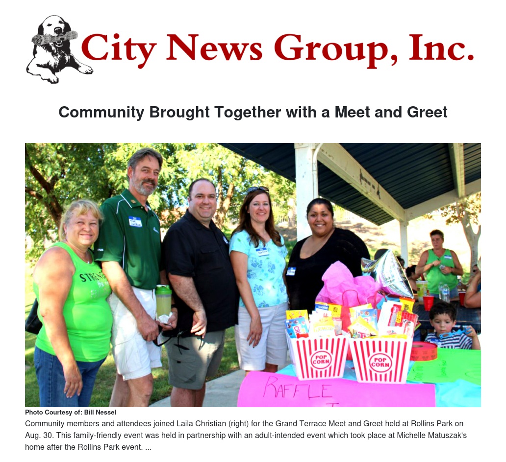 What began as an idea in the mind of Grand Terrace local Michelle Matuszak quickly spread through the community of Grand Terrace. Her idea: a community meet and greet.