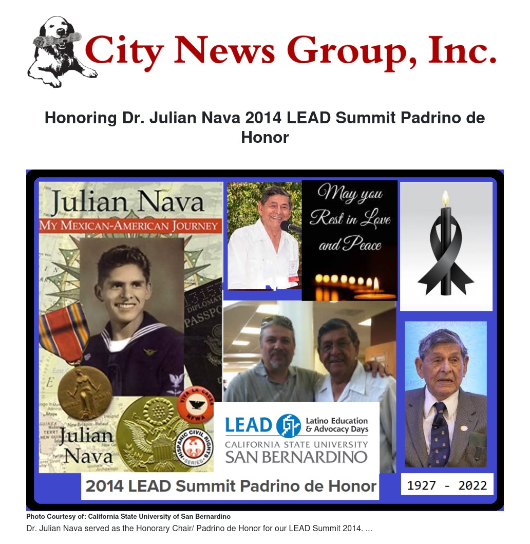 It is with great sadness and a sense of loss that we share the news of the passing of Dr. Julian Nava this past Friday. Julian served as the Honorary Chair / Padrino de Honor for our LEAD Summit 2014.