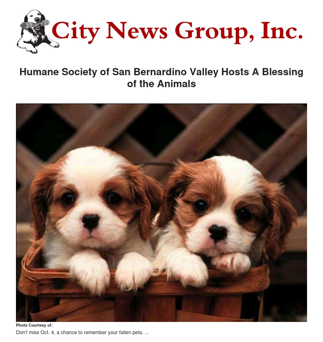 Join the Humane Society of San Bernardino Valley in giving thanks and remembrance for animals on Saturday, Oct. 4 at 10:30 a.m. with a service for the Blessing of the Animals.