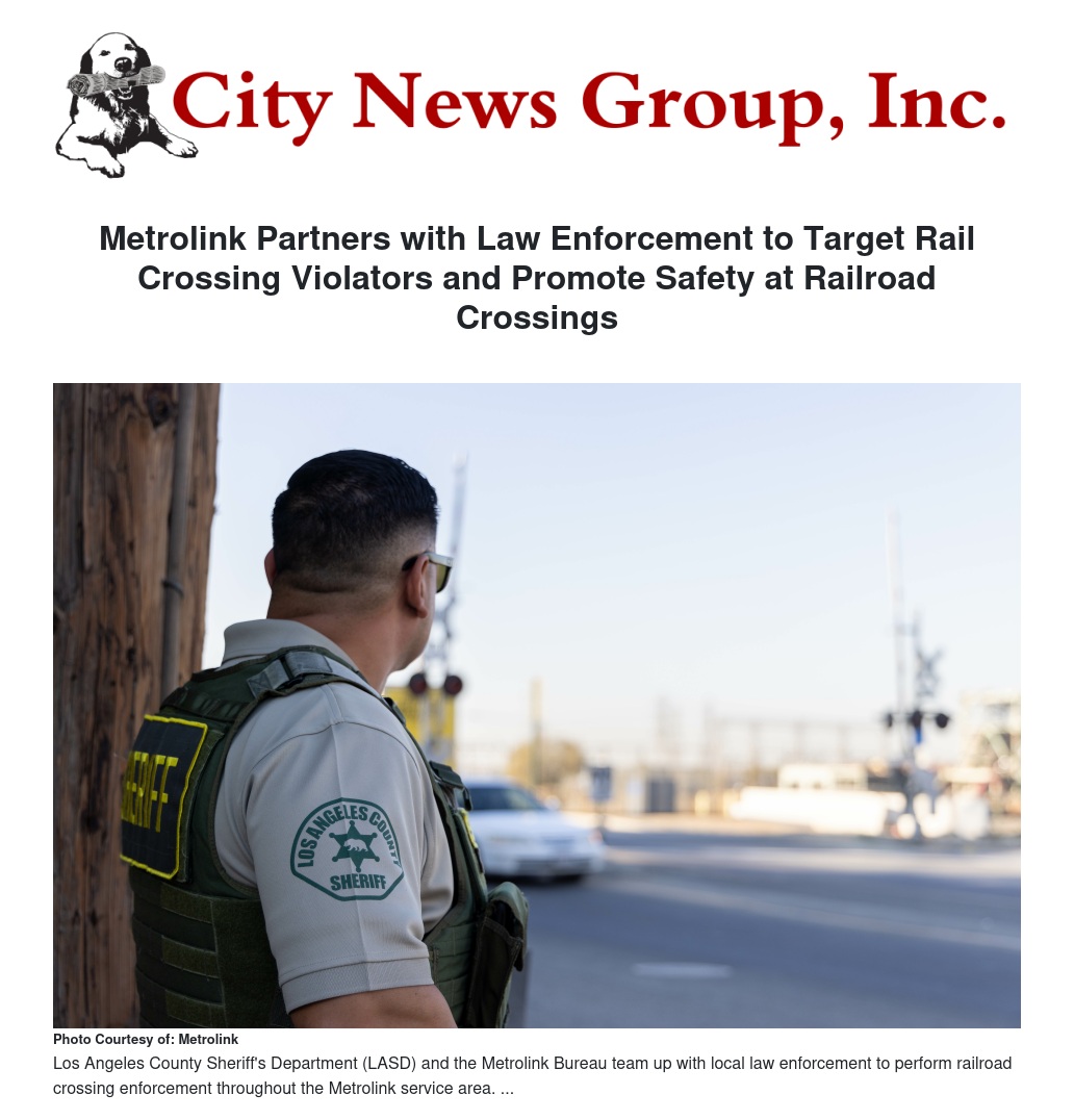 Metrolink Partners with Law Enforcement to Target Rail Crossing Violators and Promote Safety at Railroad Crossings by Cole Updike - City News Group, Inc.