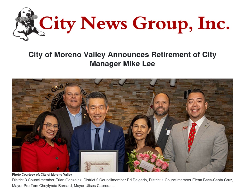 City of Moreno Valley Announces Retirement of City Manager Mike Lee by William Cortez - City News Group, Inc.