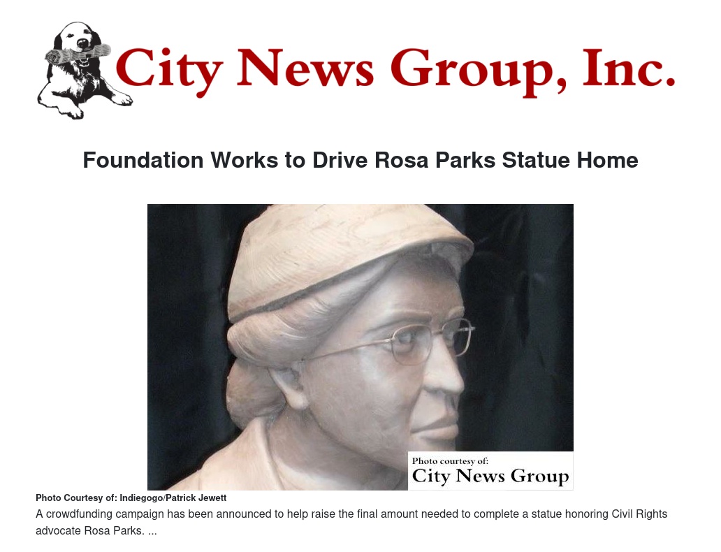 Those interested in donating may do so at www.indiegogo.com/projects/help-drive-the-rosa-parks-statue-home#/story.