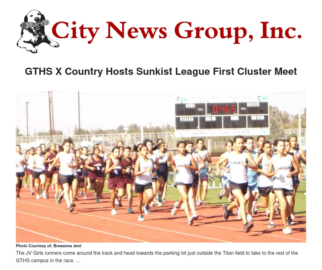 Over 300 runners from Grand Terrace, Colton, Fontana and surrounding communities participated in the Cross Country Sunkist League First Cluster meet, the first such track event hosted by Grand Terrace High School (GTHS).