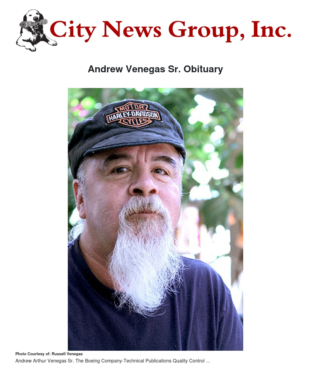 Andrew Arthur Venegas, 70, the patriarch of the Colton Ca Venegas family, passed away peacefully on Wednesday October 9th 2019, after a valiant fight against cancer, in Winchester California, surrounded by his entire family.