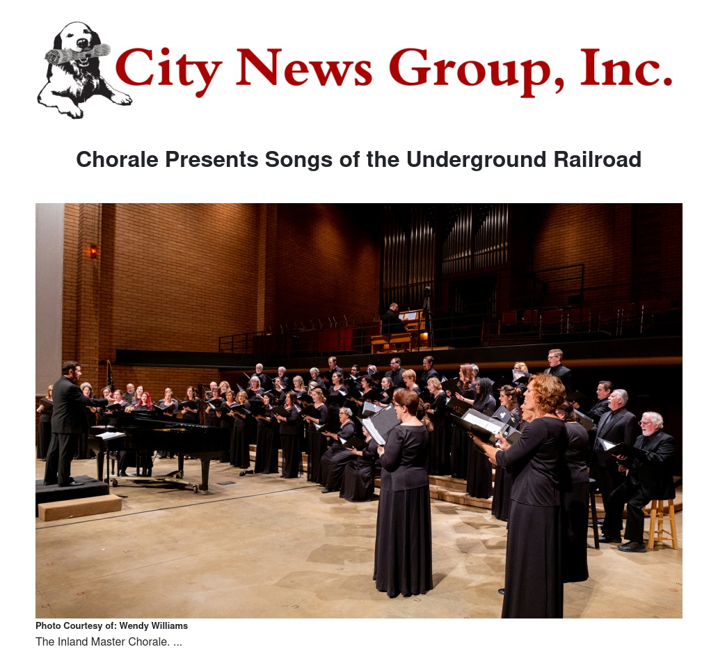 The Inland Master Chorale begins its 40th Anniversary Season with “Songs of the Underground Railroad” on October 19 and 20 at First United Methodist Church in Redlands.