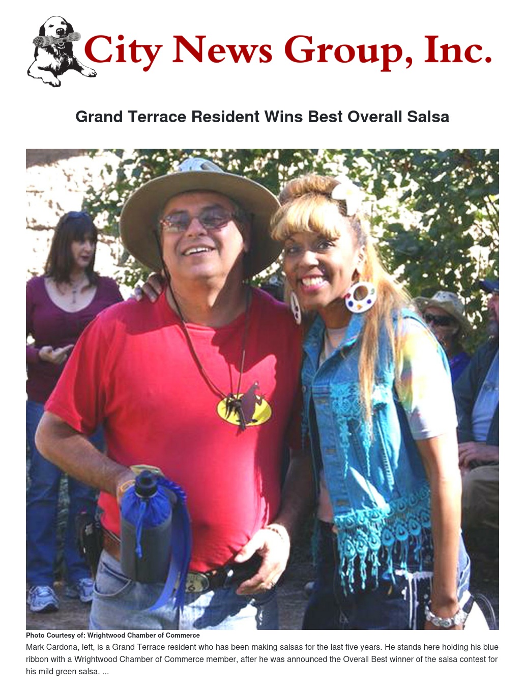 Grand Terrace resident Mark Cardona never thought about entering his homemade salsa into a salsa contest, but after urging from those close to him, he decided to enter two salsas into the Oct. 5 Salsa and Chili Contest held in Wrightwood, Calif.