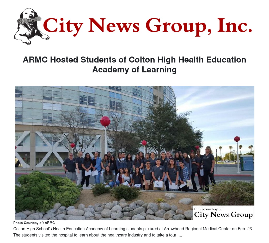 ARMC Hosted Students of Colton High Health Education Academy of Learning