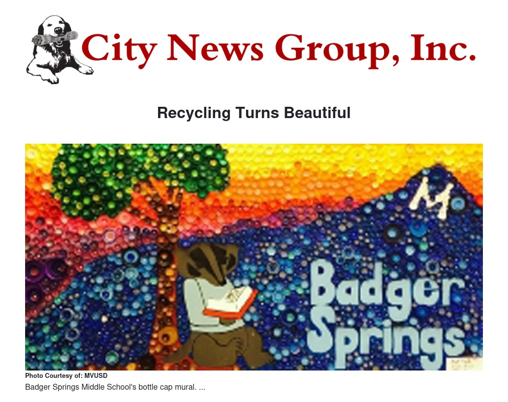 Never underestimate a talented teacher and creative and motivated students. For proof, look no further than Badger Springs Middle School, where the Art Club, guided by teacher Rachelle Ray, has taken advantage of the bounty from the school’s bottle-cap recycling drive last year to create a beautiful new school mural this year. It will be installed on a wall by the school’s library.