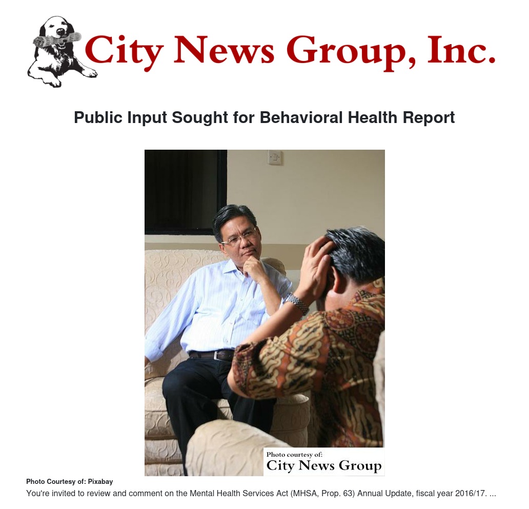 Public Input Sought for Behavioral Health Report