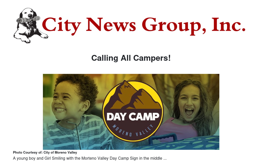 Moreno Valley's Summer Day Camp will take place from June 10 to August 9 at the Conference & Recreation Center, located at 14075 Frederick Street.