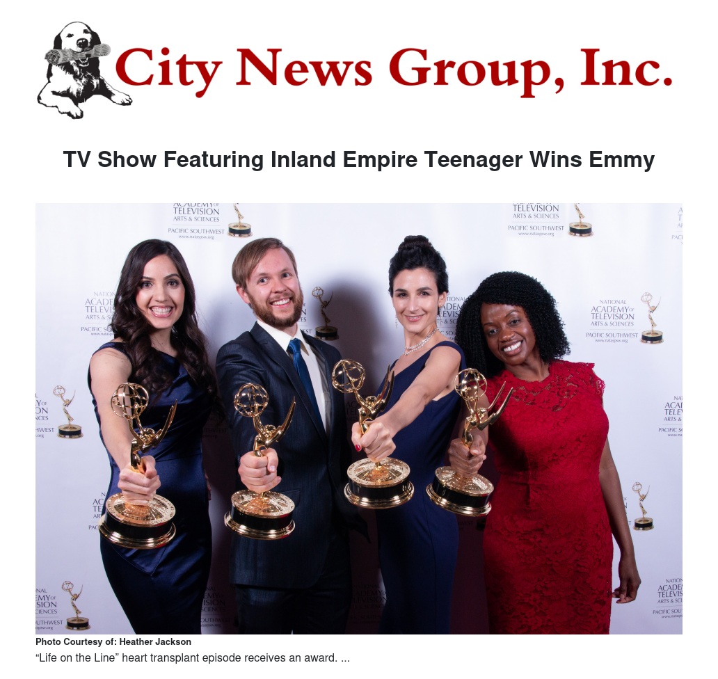 Mound City Films took home an Emmy® at the 45thannual Pacific Southwest Chapter of the National Academy of Television Arts & Sciences Emmy® awards ceremony for its “Life on the Line” series episode about an Inland Empire teenager who received a heart transplant.