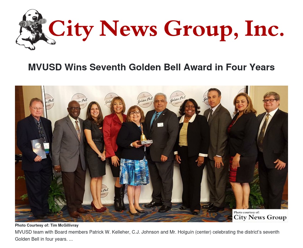MVUSD Wins Seventh Golden Bell Award in Four Years