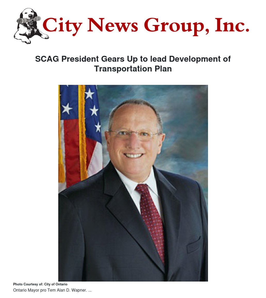 Wapner, who also serves as President of the San Bernardino County Transportation Authority and the Ontario International Airport Authority, has helped drive SCAG’s three most recent Regional Transportation Plans and is a leading voice on the relationship between transportation, economic opportunity and livability.
