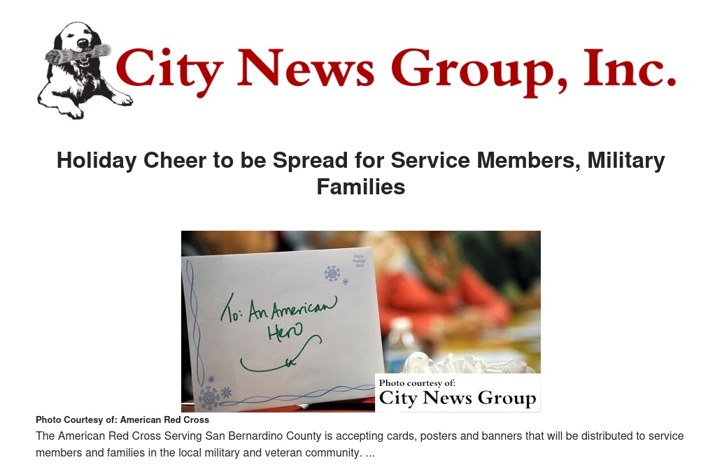 This year, the American Red Cross Serving San Bernardino County is accepting cards, posters and banners that will be distributed to service members and families in the local military and veteran community.