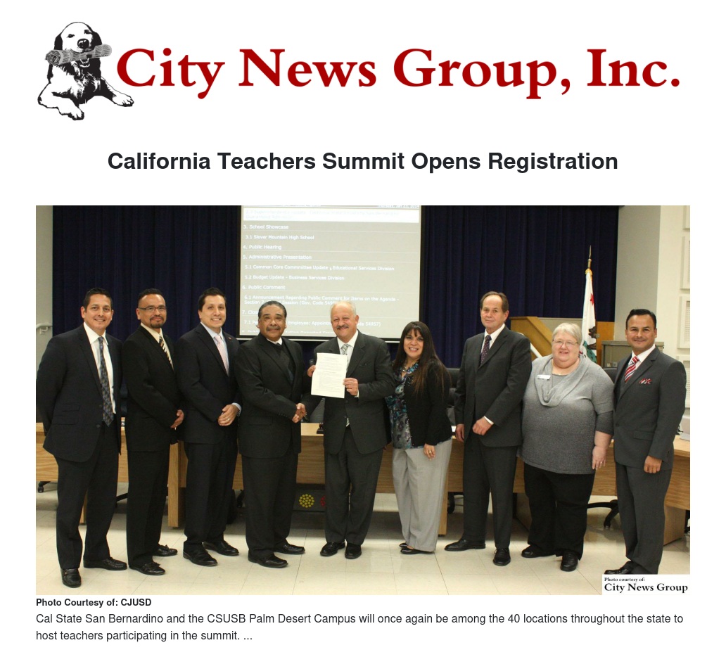 Cal State San Bernardino and the CSUSB Palm Desert Campus will once again be among the 40 locations throughout the state to host teachers participating in the summit.