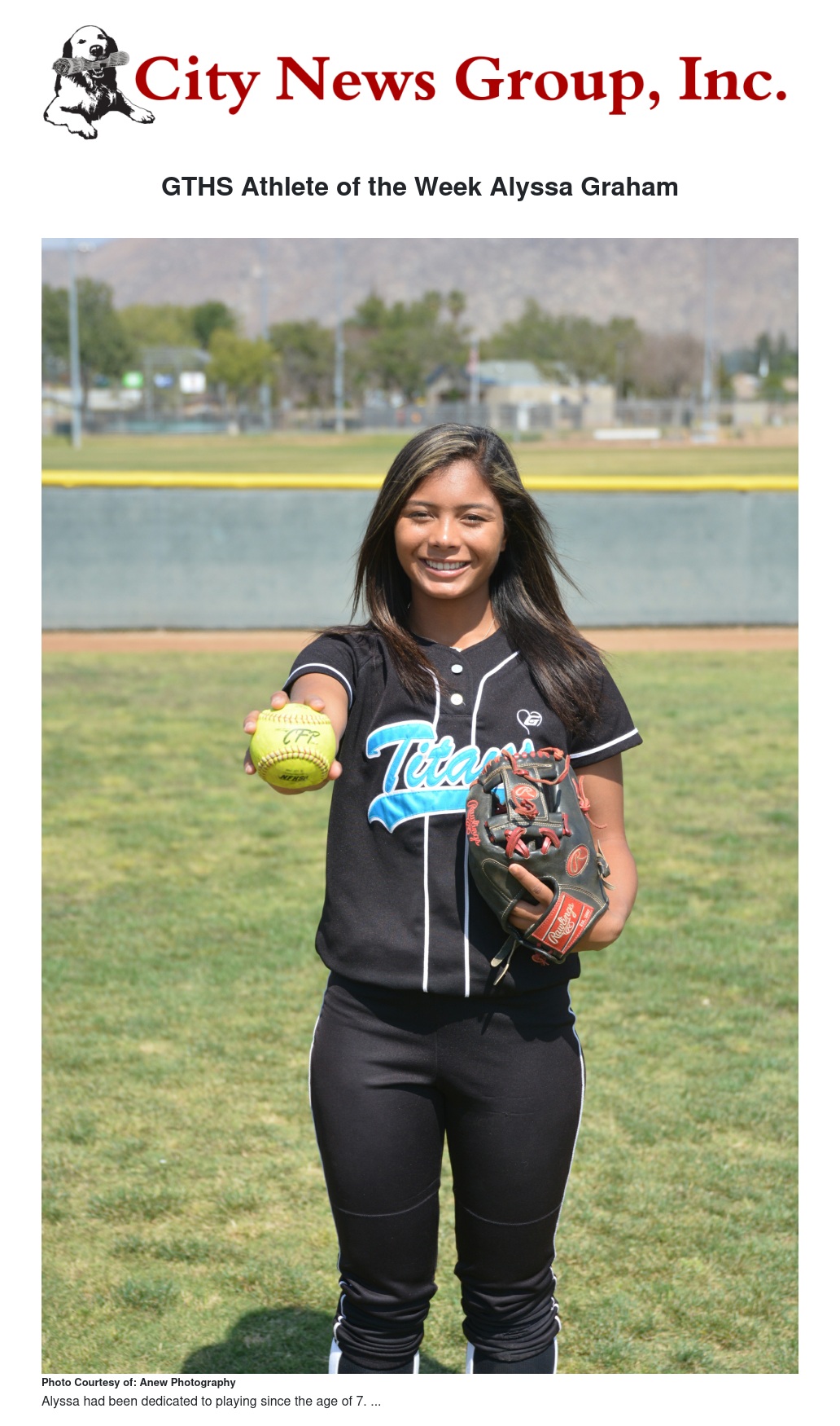 This week’s GTHS student athlete is Alyssa Graham. Alyssa is a senior this year carrying a 3.8 GPA. She plays on GT’s Varsity Softball team, and has been playing softball since the age of 7.