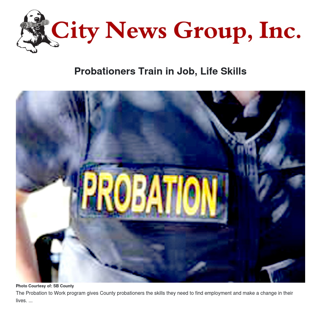 Probation to Work is a partner program with San Bernardino County's Workforce Development, offering intensive job skills and training to those on probation through weekly employment-readiness workshops teach probationers job readiness, networking and resume tips, interviewing skills and how to respond to questions regarding criminal convictions, among other skills.