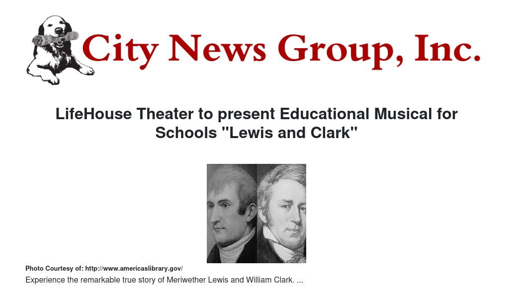 LifeHouse Theater to present Educational Musical for Schools "Lewis and Clark"