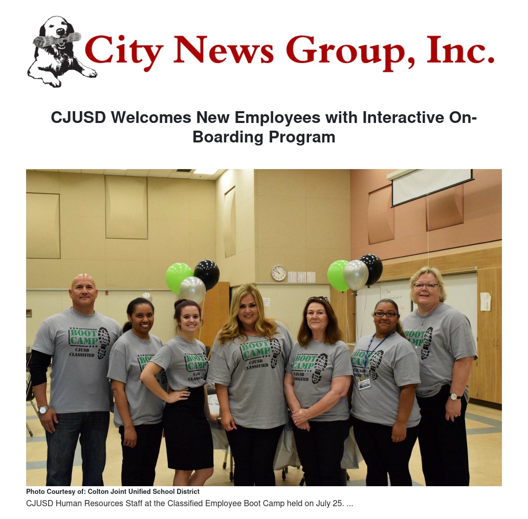 CJUSD Welcomes New Employees with Interactive On-Boarding Program by Katie Orloff and Jacquie Paul - City News Group, Inc.
