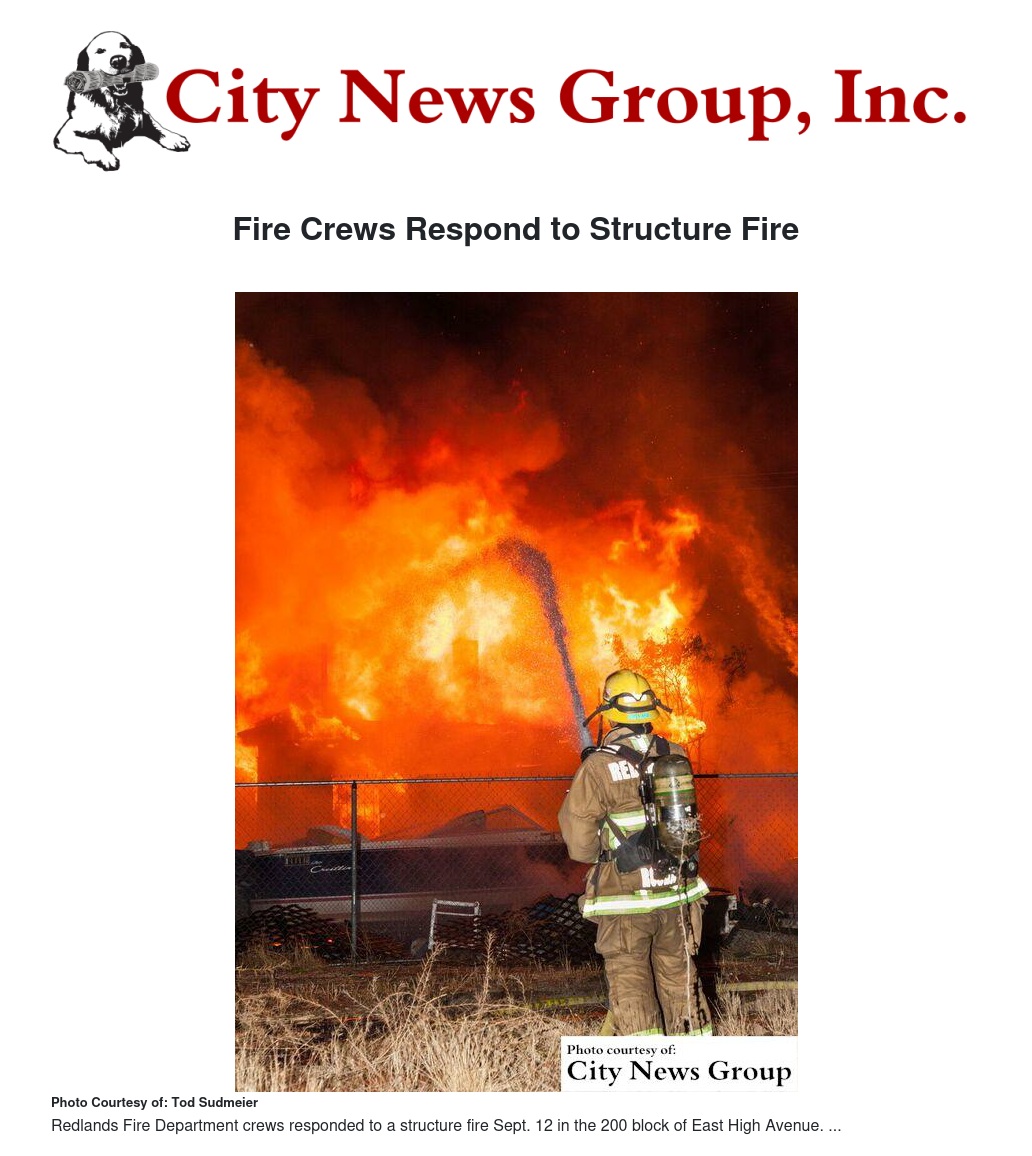 REDLANDS>> Redlands Fire Department crews responded to a structure fire Sept. 12 in the 200 block of East High Avenue.
