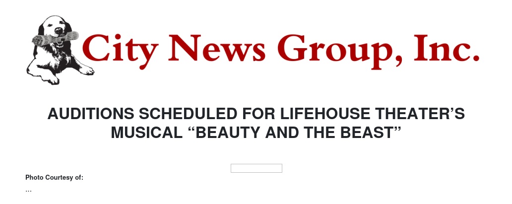 AUDITIONS SCHEDULED FOR LIFEHOUSE THEATER’S MUSICAL “BEAUTY AND THE BEAST” by Jeff DeWitt - City News Group, Inc.