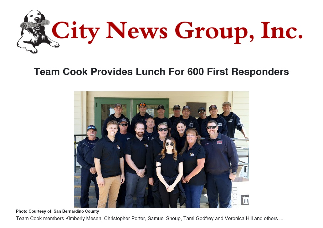 Team Cook Provides Lunch For 600 First Responders by Stella Pierce - City News Group, Inc.