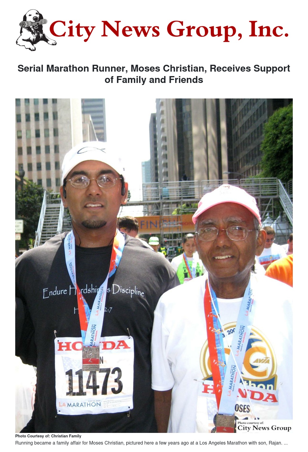 Since 1999, Christian had run at least one marathon a month, even running some of those marathons with his son, Rajan. His wife, Lena, would register him for all his races, book his flights and his hotels, and his daughter Brinda also showed her support of her father by cheering him on in all his races.