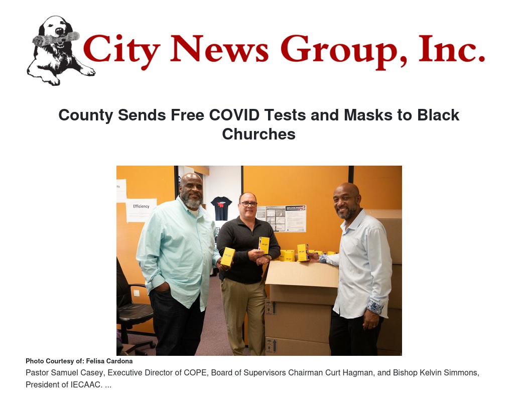 County Sends Free COVID Tests and Masks to Black Churches by Felisa Cardona - City News Group, Inc.