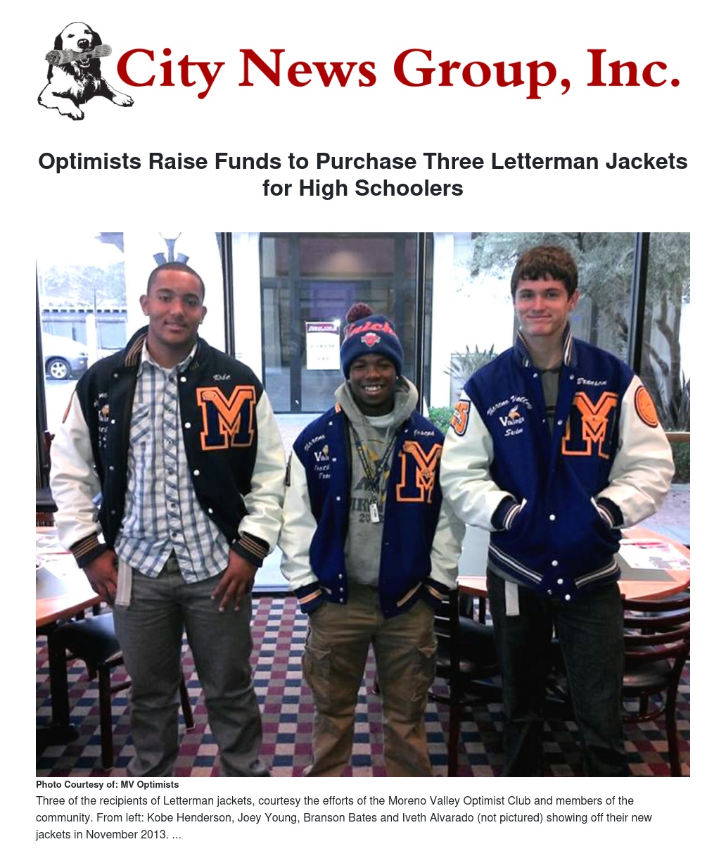 Optimists Raise Funds to Purchase Three Letterman Jackets for High Schoolers