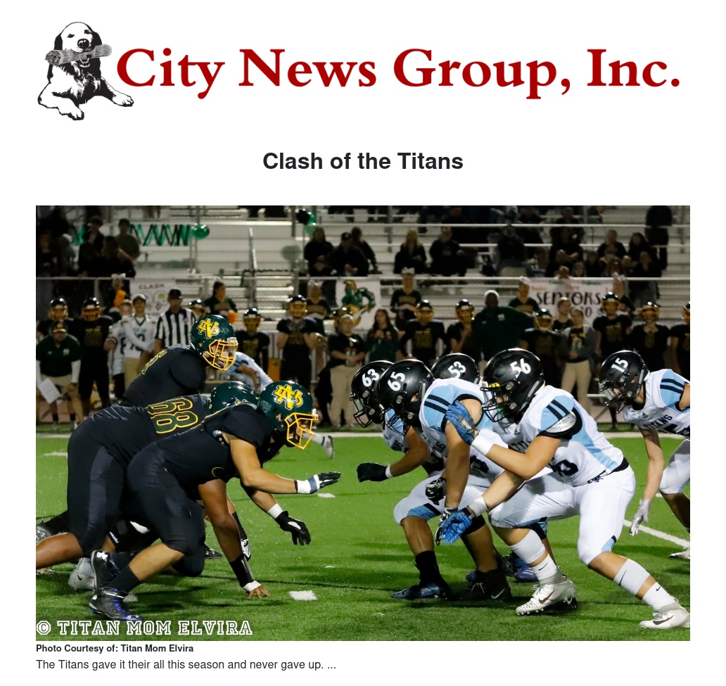 There was a clash of the Titans for the first round of the CIF Southern Section High School Football playoffs for this Division 8 match-up. For this heavyweight bout it was played at San Bernardino Valley College on Friday November 10th.