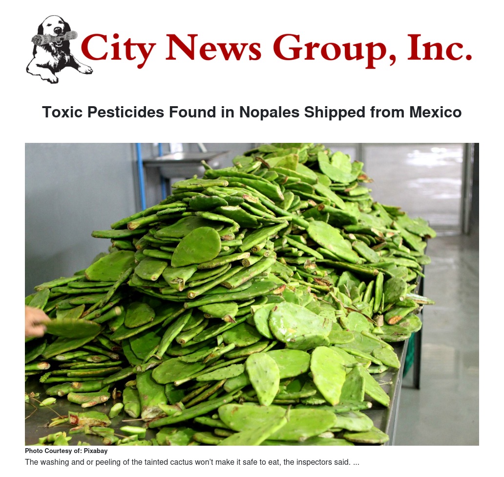This past week, state inspectors found unapproved pesticides on cactus pads (nopales) that can cause poisoning, neurotoxicity and permanent nerve damage. As reported by Channel 7 news this week, Californians are being warned not to eat nopales imported from Mexico and sold at specific retail and wholesale locations, which includes Stater Brothers stores, after inspectors discovered contaminated samples at the San Bernardino Distribution Center for Stater Bros in San Bernardino, California. The distribution center covers 171 stores throughout Southern California and five locations in Northern California. The state health officials reported that under routine sample check between Jan. 23 and 29, they found contaminated Opuntia ficus indica, or nopal cactus paddles, at the distributions center where the produce was packaged under several names, including Aramburo, Los Tres Huastecos and Mexpogroup Fresh Produce. The washing and or peeling of the tainted cactus won’t make it safe to eat, the inspectors said. Anyone who has purchased these products recently should throw them away or return them to the store. Currently, no illnesses have been reported from the cactus to date.