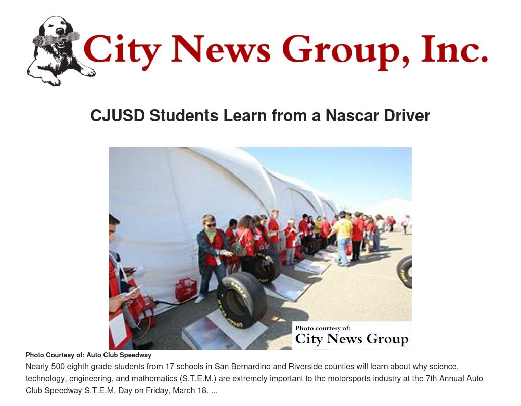 The Auto Club Speedway S.T.E.M. Day program is part of Auto Club Speedway’s major youth initiative which provides area youth with a positive and enriching outlook on life inspiring achievement and education in an effort to build future race fans.