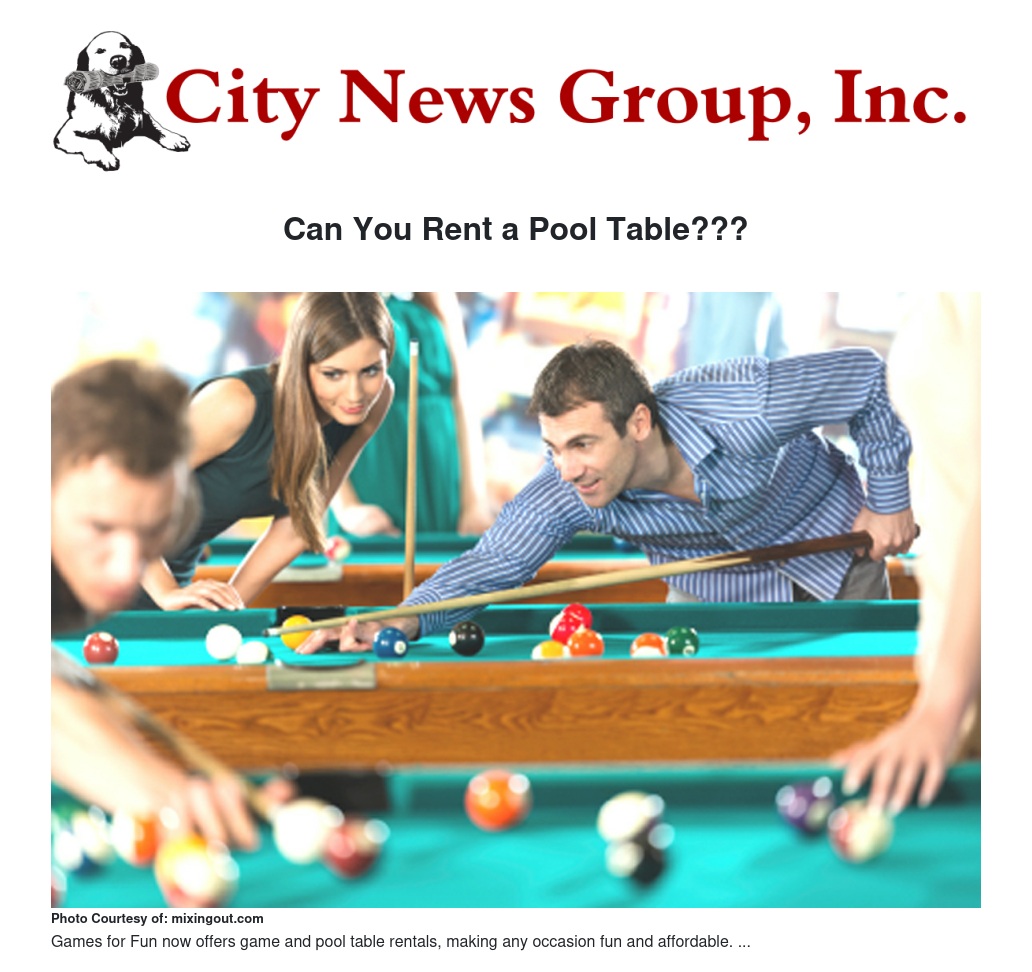Operating in San Bernardino since 1984, the longtime game room product business introduced its new rental department on the heels of its new line of air hockey, shuffleboard, foosball and ping pong tables, along with a newly designed pool table, presented in late 2013. For personal or business events, Games for Fun now offers rentals on these games and tables with a significant decrease in purchase price after the game has been rented three times or more, allowing consumers to choose between purchasing games and tables brand new or used.