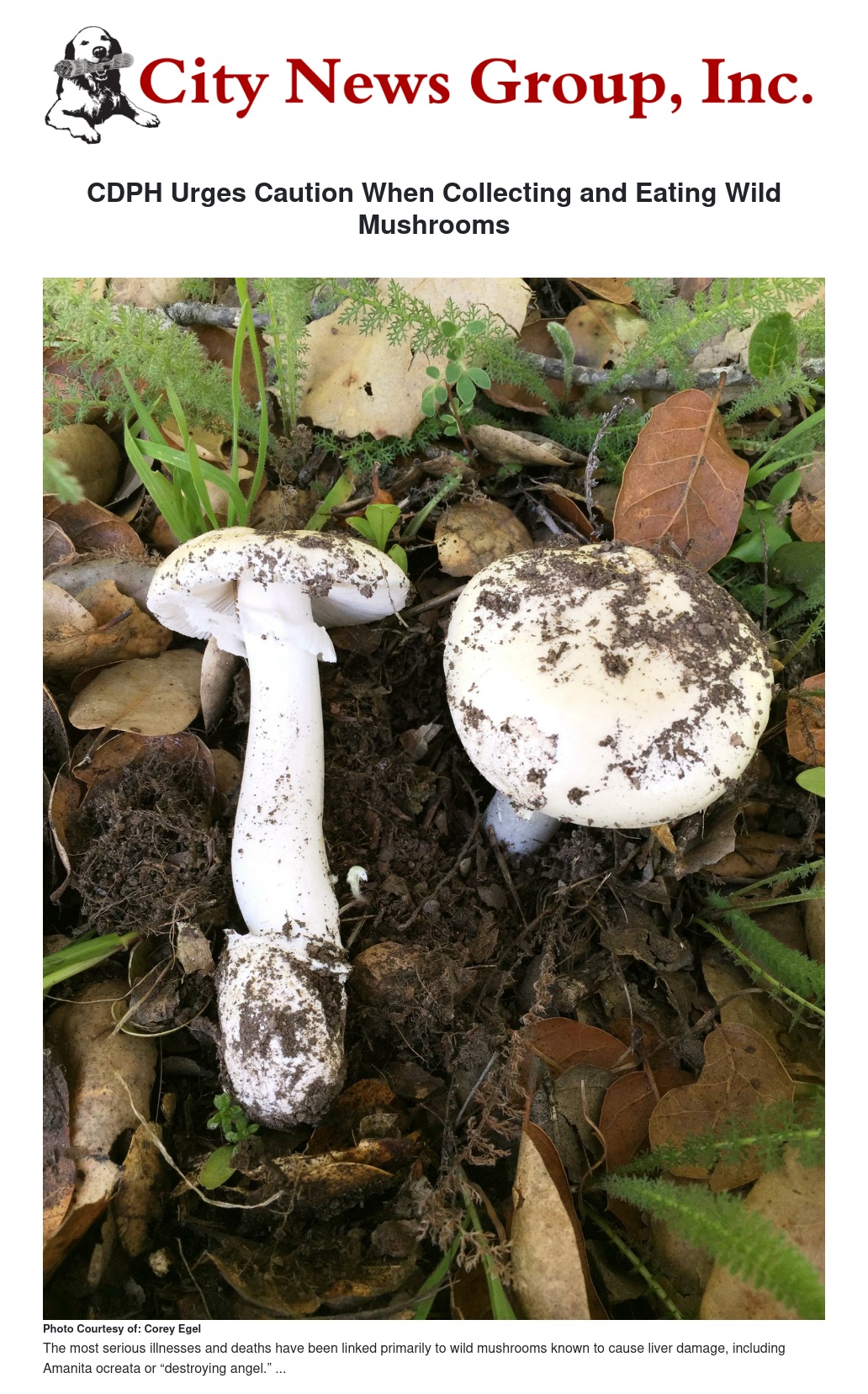As seasonal rains promote the growth of wild mushrooms, California Department of Public Health (CDPH) Director and State Public Health Officer Dr. Karen Smith is again reminding people that eating wild mushrooms can cause serious illness and even death.