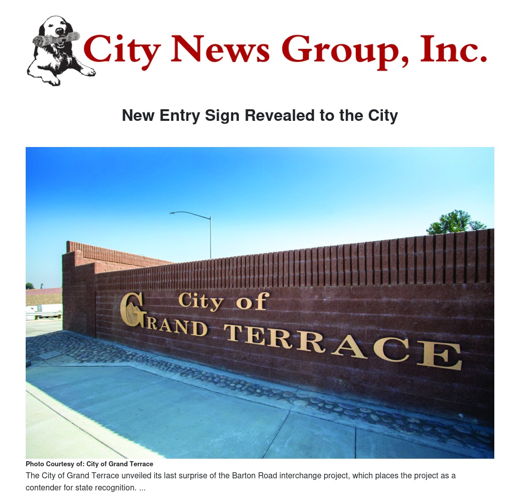 The final surprise of the Barton Rd. Interchange project has been unveiled. According to the City of Grand Terrace, the interchange project is a contender for state recognition as a model infrastructure project. If you pass the northbound on-ramp, check it out on your return and let the city what you think.