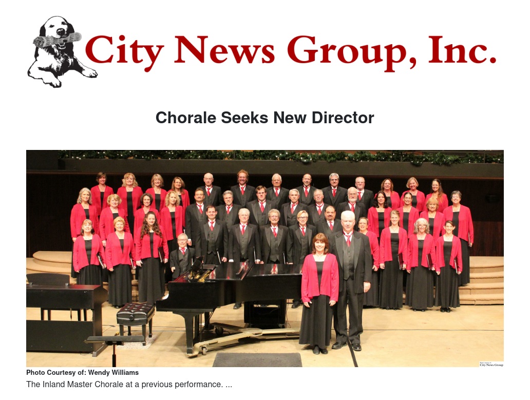 REDLANDS>> The Inland Master Chorale is seeking an experienced choral conductor to fill the vacancy that will be left by Roger W. Duffer when he retires at the end of the current concert season.
