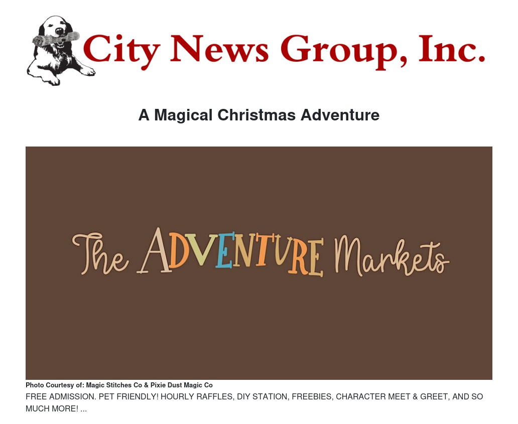 It’s a Christmas Adventure! Join us at The Adventure Markets for our last market of the year “A Magical Christmas Adventure” on Sunday, December 3 · 12 - 4pm at Edwards Mansion
