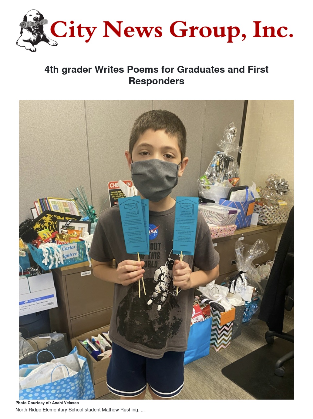 4th grader Writes Poems for Graduates and First Responders by Anahi Velasco - City News Group, Inc.