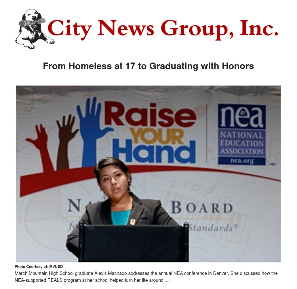 The 2014 March Mountain High School graduate recently told the National Education Association (NEA) conference about how an NEA-supported collaborative program at her school, which brings together teachers, staff and students, completely turned her life around.