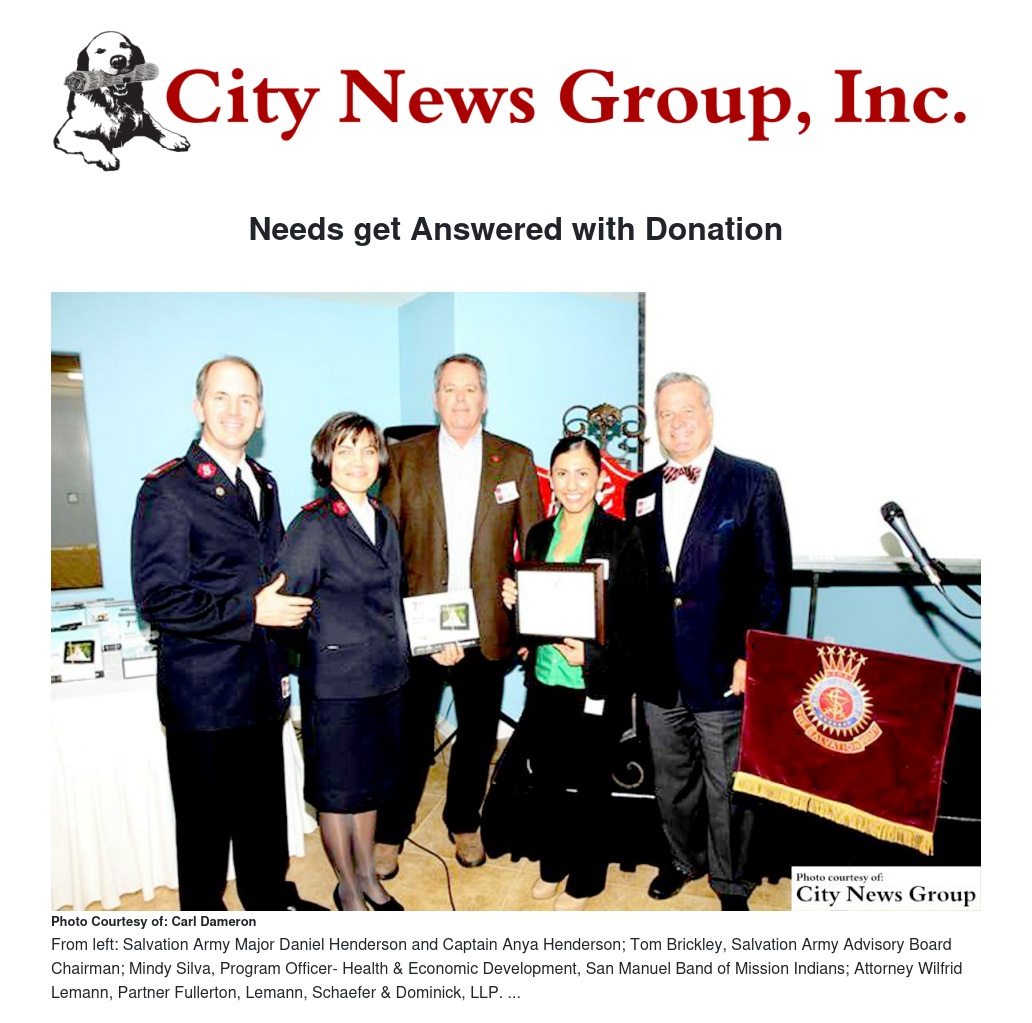 A $30,000 grant from the San Manuel Band of Mission Indians helped the San Bernardino area Salvation Army serve the needs of thousands of hungry, homeless and hopeless people in San Bernardino, Highland, Rialto, Colton, Grand Terrace and Bloomington.