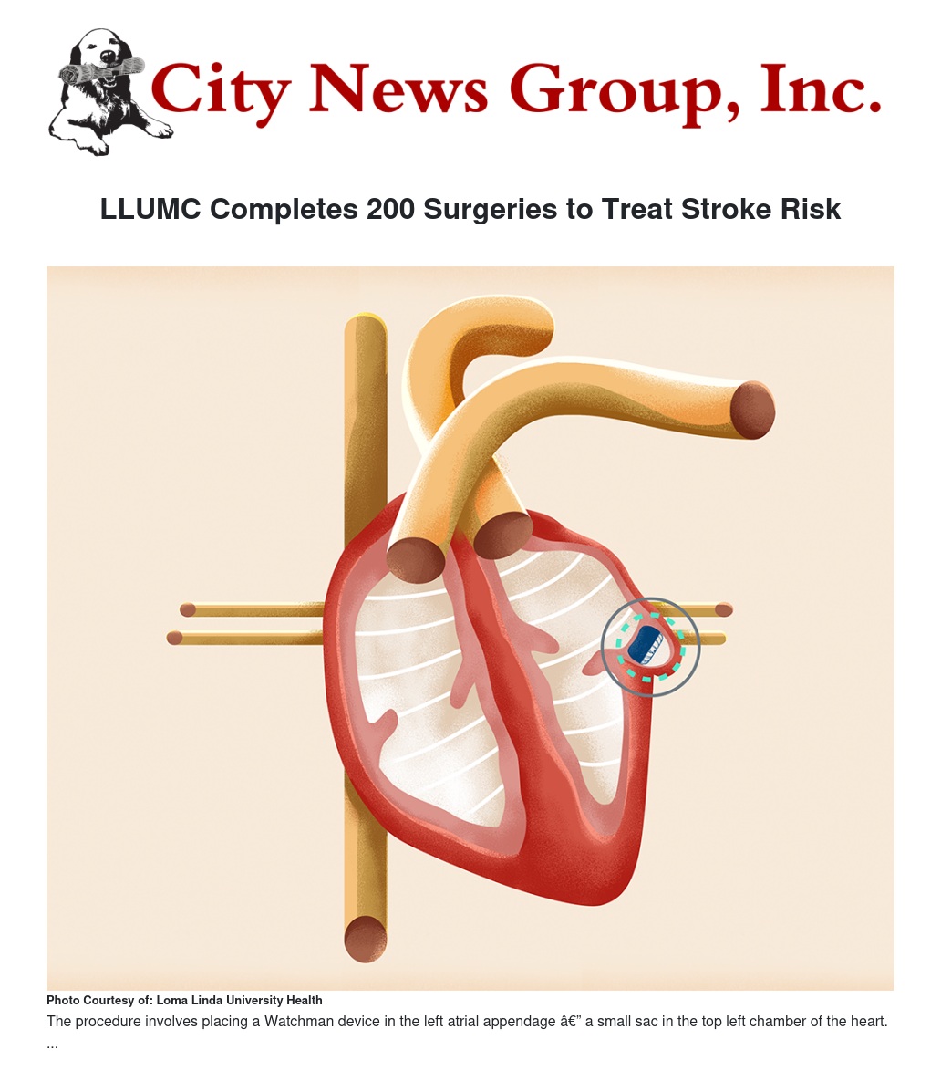 Physicians at Loma Linda University Medical Center (LLUMC) have completed 200 left atrial appendage closure procedures, more than any other healthcare institution across the Inland Empire.