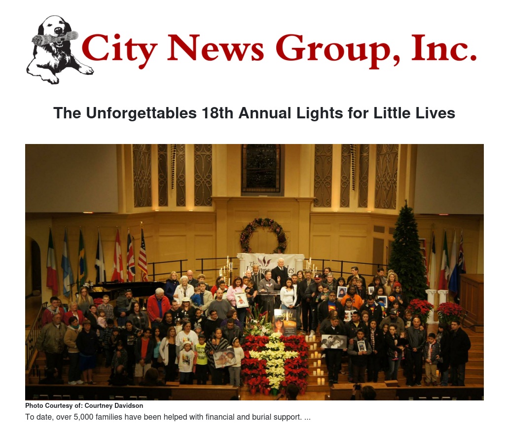 The Lights for Little Lives Memorial Walk and Candle Lighting Ceremony was the very first public event created by The Unforgettables Foundation after a full year of serving families across the region. To date, over 5,000 families have been helped with financial and burial support from over 80 cities in Southern California. The Orange Belt Funeral Directors Association, along with various clergy associations and medical associations in the region collaborated with this celebration of our children in life and in death.