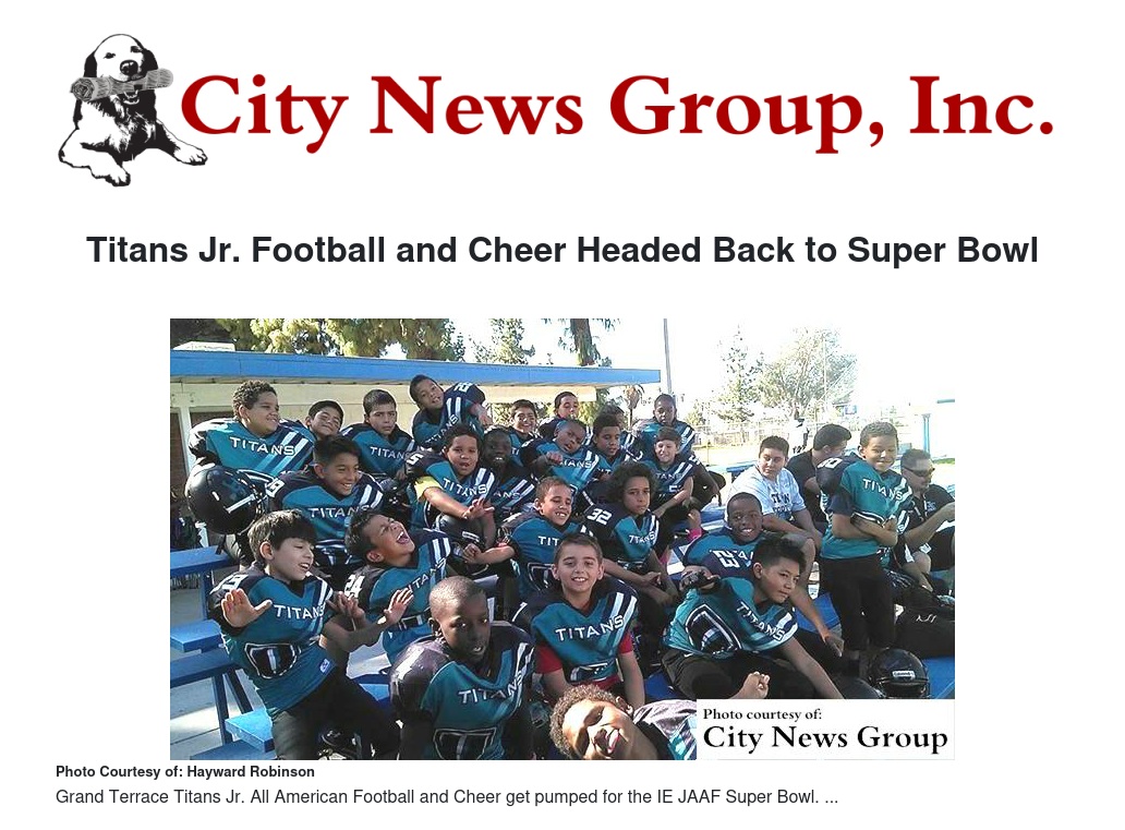 Grand Terrace Titans Jr. All American Football and Cheer are headed back to the Super Bowl!