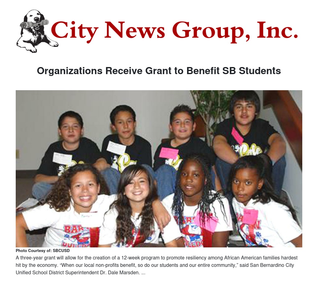 The $640,000, three-year grant was awarded by the San Bernardino County Department of Behavioral Health with the goal of helping African-American families hardest hit by the struggling economy. The grant will allow for the creation of a 12-week program called Successfully Motivating African Americans in Resiliency Training.