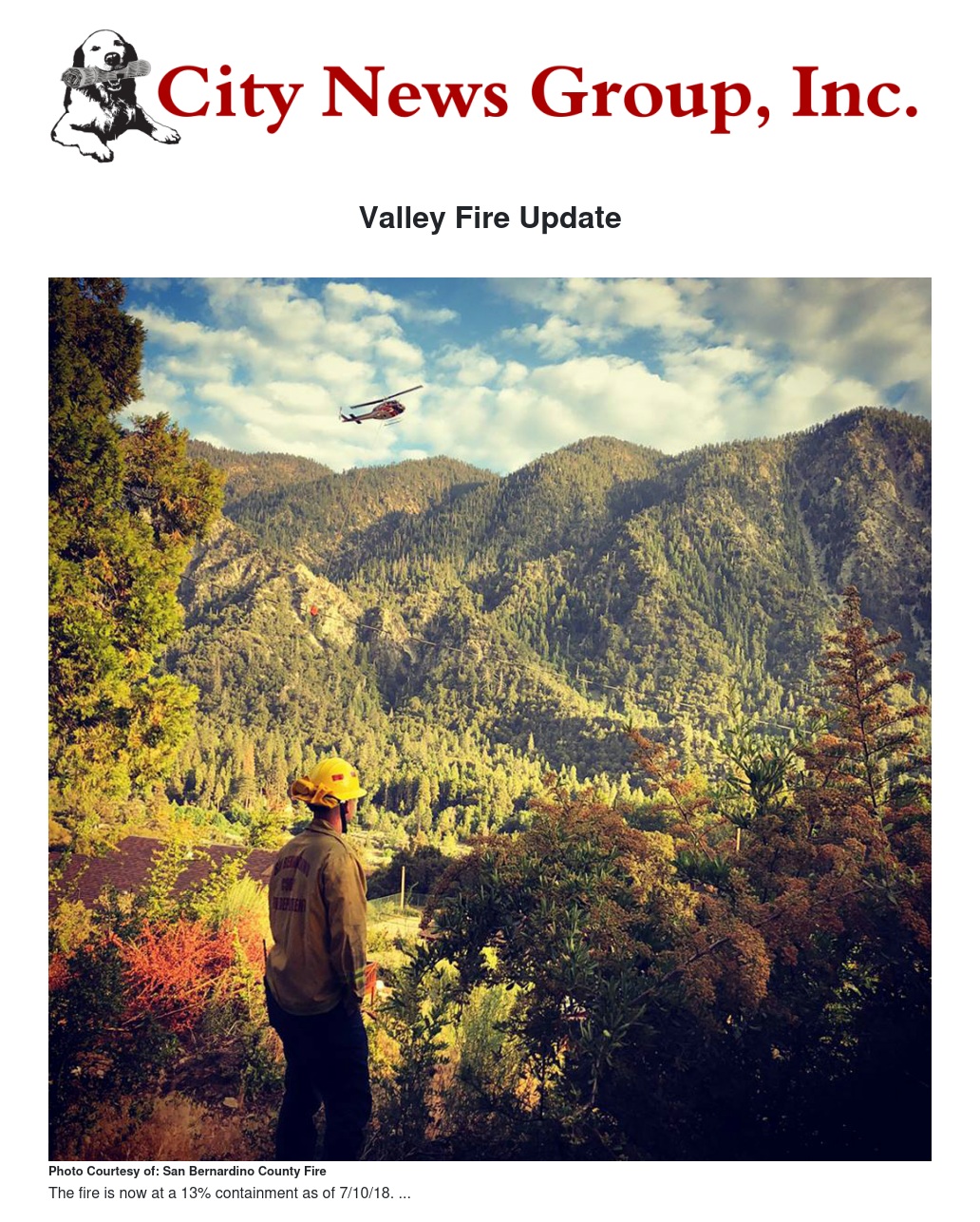 The fire remains the same size at 1348 acres and 13% containment. Fire behavior was stable last night. This terrain is rugged and steep and the fire is burning in chaparral and large timber in an area with no significant fire history. Conditions remain challenging for firefighters with high temperatures and accessibility to and within the fire area. Fuels are drying out from Saturday’s storm and fuels are drier than usual for this time of years due to recent drought history. Weather today is unstable, with thunderstorms possible in the afternoon. Storms may cause winds that push the fire and increase the risk of flash flooding. Community meetings are scheduled for the communities of Forest Falls tonight, and Angelus Oaks on Wednesday.