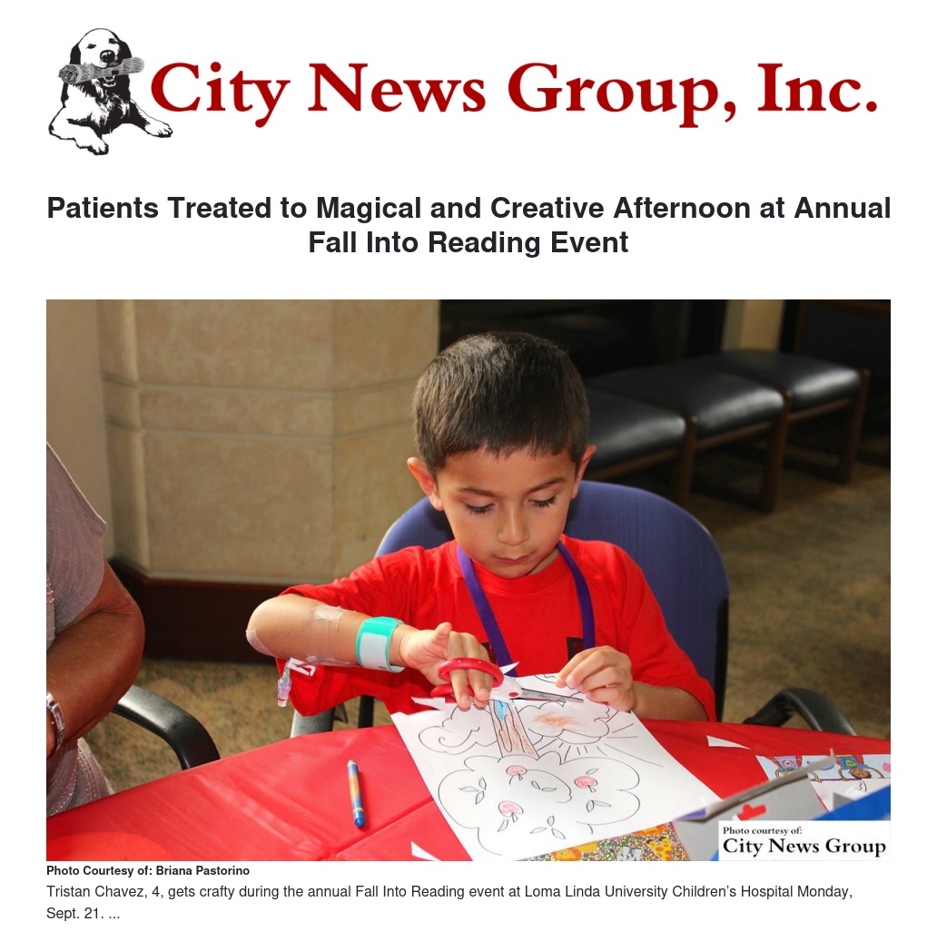 Patients at Loma Linda University Children’s Hospital (LLUCH) got up and moving out of their hospital beds for the annual Fall Into Reading event hosted by the Big Hearts for Little Hearts Loma Linda Guild Monday, Sept. 21.
