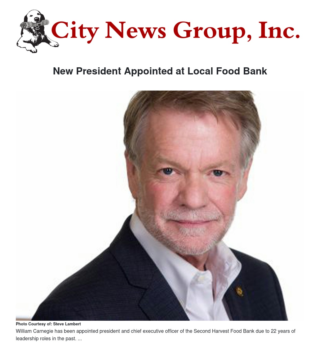 "We’re thrilled to have a leader of William Carnegie’s stature joining Second Harvest and helping to fortify our position as one of the most respected non-profit organizations in the Inland Empire,” said Greg Wilkinson, SHFB's board chairman. “With more than 750,000 people in the two counties living under economic disadvantage, our challenge has never been greater.”