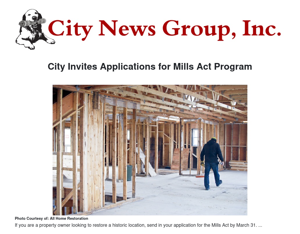 City Invites Applications for Mills Act Program